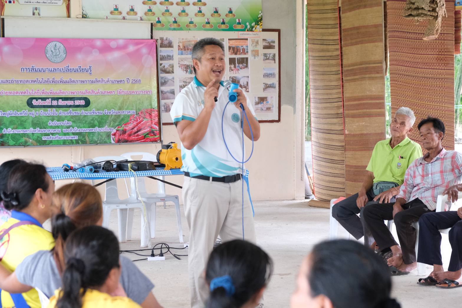 นายธงชัย เสาสามา ผู้อำนวยการศูนย์ขยายพันธุ์พืชที่ 7 จังหวัดมหาสารคาม มอบหมายให้นายสุธี ภูมาตย์ ตำแหน่งนักวิชาการส่งเสริมการเกษตรชำนาญการ เป็นวิทยากรบรรยายในหัวข้อ การให้น้ำตามความต้องการของพืชและการจัดการระบบน้ำภายในโรงเรือน ให้กับเกษตรกร กลุ่มแปลงใหญ่ผักอินทรีย์ บ้านน้ำจั้น หมู่ 6 บ้านน้ำจั้น ตำบลชื่นชม อำเภอชื่นชม จังหวัดมหาสารคาม โดยมีเกษตรกรเข้าร่วมอบรม จำนวน 40 ราย